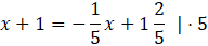 Aby pozbyć się ułamków przemnóż obie strony przez wspólny mianownik, czyli 5. Aby dało się przemnożyć ułamki mieszane, zamień je na ułamki niewłaściwe.