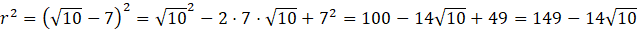 Podstawiając wyznaczoną wcześniej odległość między środkami oraz promień podanego okręgu otrzymasz:
