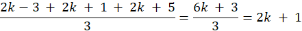 Wykorzystaj ten fakt i podstaw za a, b i c odpowiednio 2k - 3, 2k + 1 i 2k + 5: