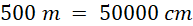 Zamieniając metry na centymetry, dopisujemy dwa zera.