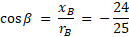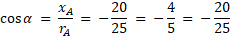 Porównaj wartości cosinusa kąta α i cosinusa kąta β, jeśli punkt A o współrzędnych (-20,15) należy do ramienia końcowego kąta α, a punkt B o współrzędnych (-24, 7) należy do ramienia końcowego kąta β.