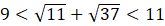 Przez to, że obie liczby 11 i 37 są bardzo blisko całkowitych kwadratów mniejszych od siebie to możemy założyć, że będą dużo mniejsze od 11, czyli będą po prostu mniejsze od 10.
