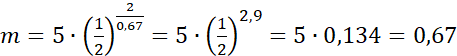 m0 = 5g, T = 244 dni = 0,67 lat, t = 2 lata