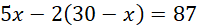 2(30 – x) – liczba punktów utraconych przez Alę za błędne odpowiedzi – za każdą złą odpowiedź, odejmowane są 2 punkty