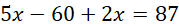 5x - liczba punktów uzyskanych przez Alę za poprawne odpowiedzi – za każdą prawidłową odpowiedź dostaje się 5 punktów
