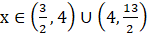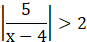 Przerzucamy wszystkie elementy oprócz wartości bezwzględnej na drugą stronę równości. Wyznaczamy argument, dla którego wyrażenie pod wartością bezwzględną jest zero. Rozważamy osobno przypadek dla wartości większych i mniejszych od tej liczby. Jeżeli wynik należy do rozważanego przypadku, to jest rozwiązaniem.Liczby naturalne należące do tego przedziału, to 2, 3, 5, 6.