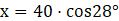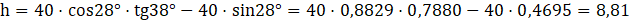 Wyznaczamy wartości funkcji trygonometrycznych, aby zawrzeć w tym stosunku szukaną długość. Wyznaczamy wysokość odczytując wartości z tablic i obliczamy.