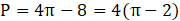 Podaj długość czerwonej linii i powierzchnię niebieskiego obszaru, jeżeli wierzchołki wielokąta foremnego leżą na okręgu o promieniu 2.