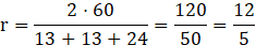 Wyznacz obwód koła wpisanego w trójkąt równoramienny, którego ramię ma długość 13, a obwód wynosi 50.