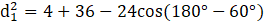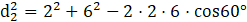 Dla dowolnego trójkąta kwadrat jednego z boków jest równy sumie kwadratów dwóch pozostałych odjąć podwojony iloczyn długości tych boków oraz cosinusa kąta między nimi.