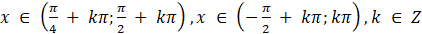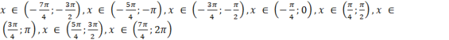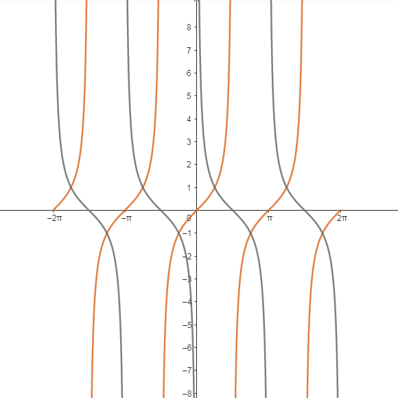 Funkcja tangens przyjmuje wartości większe od funkcji cotangens na przedziałach postaci: