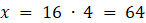 Podane liczby mogą tworzyć ciągi w następujących kolejnościach: x, 4, 16; 4, x, 16; 4, 16, x; x, 16, 4; 16, x, 4; 16, 4, x. Wtedy wartości x są równe: