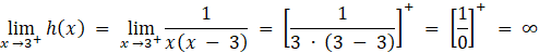 Funkcja h nie ma takiej samej granicy przy x dążącym do 3 z prawej strony, jak granica