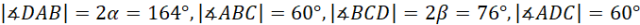 Ostatecznie miary kątów w deltoidzie wyniosą w przybliżeniu: