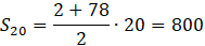 Wyznacz różnicę, pierwszy i dwudziesty wyraz ciągu, a następnie oblicz sumę.