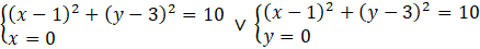 Odp. Okrąg przecina osie układu współrzędnych w punktach: