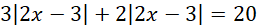 Wyłącz w pierwszym wyrazie 3 przed wartość bezwzględną, a w drugim wyrazie wyłącz 2 przed wartość bezwzględną.