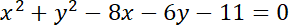 4. Przenieś wyrazy na drugą stronę, aby otrzymać równanie okręgu: