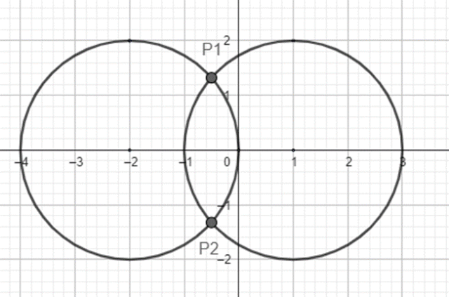 Rozwiąż układ metodą podstawiania i następnie narysuj dwa okręgi w jednym układzie współrzędnych, aby podać interpretację geometryczną.