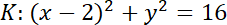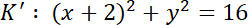 W tym zadaniu musisz obliczyć pole wspólnej części kół, jeśli ograniczają go dwa dane okręgi, z których okrąg K’ stanowi symetryczny obraz okręgu K w stosunku do początku układu współrzędnych.