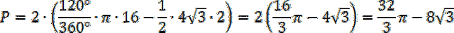 Pole części wspólnej to podwojona różnica pomiędzy polem wycinka koła o kącie