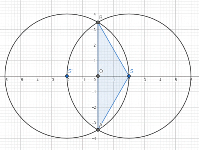 Zacznij od zapisania równania okręgu K w postaci wykładniczej. Okrąg K ma środek w punkcie S(2, 0). Okrąg K’ ma środek w punkcie S’(-2, 0) – symetrycznie względem środka układu współrzędnych. Zapisz równanie okręgu K’. Wykonaj rysunek pomocniczy i na jego podstawie oblicz pole części wspólnej okręgów.
