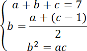 Dane są trzy liczby, tworzące ciąg geometryczny, o ich sumie równej 7. Jeśli od ostatniej liczby odejmiesz 1, to powstanie ciąg arytmetyczny. Wyznacz o jakich liczbach mowa.