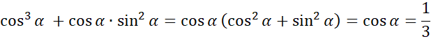 Obliczmy cosinus alfa z jedynki trygonometrycznej, z racji tego, że znamy wartość sinusa. Teraz w wyrażeniu, którego wartość trzeba obliczyć, należy wyciągnąć cosinus przed nawias. Dostaniemy iloczyn cosinusa i jedynki trygonometrycznej – wynikiem jest po prostu cosinus. Jego wartość obliczyliśmy w poprzednim kroku.