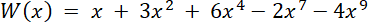 tak, aby był on stopnia dziewiątego, który jest uporządkowany malejąco i ma tylko pięć wyrazów różnych od zera.