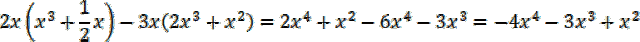Pomnóż każdy wyraz znajdujący się w nawiasie przez jednomian stojący przy nim i zredukuj wyrazy podobne, czyli dodaj/odejmij jednomiany podobne.