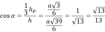 Wyznacz cosinus kąta, który z podstawą ostrosłupa tworzy krawędź boczna, jeśli dany jest ostrosłup prawidłowy trójkątny o krawędzi podstawy