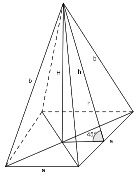 Wyznacz pole powierzchni całkowitej ostrosłupa prawidłowego czworokątnego, którego ściany boczne są nachylone do podstawy pod kątem