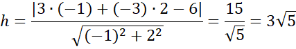 Wyznacz wysokość trójkąta ABC opuszczoną z wierzchołka C, a następnie pole tego trójkąta. A(-2,2), B(6,6), C(3,-3)