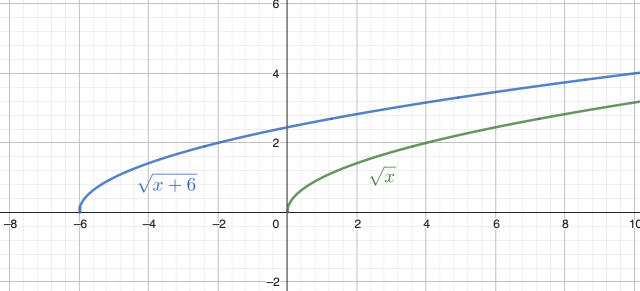 Zauważ, że aby narysować wykres funkcji f, najpierw musisz narysować wykres funkcji , a następnie przesunąć go o 6 jednostek w lewo.