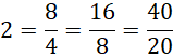 40 : 20 = 2