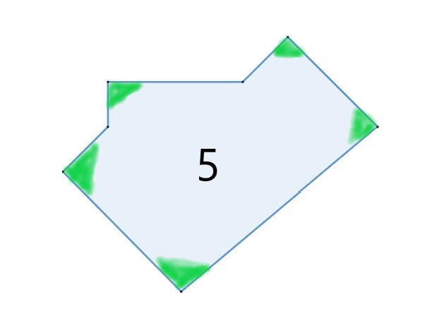 Wielokąt ma 5 kątów prostych.