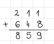 W tym zadaniu uzupełnij zapis dodawania pisemnego tak, by był on poprawny.