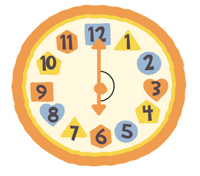 O godzinie 18:00 wskazówki tworzą kąt półpełny.