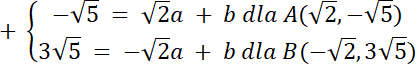 W tym zadaniu skorzystaj ze wzoru na równanie kierunkowe prostej, y = ax + b, wstaw współrzędne punktów, które należą do prostej i wyznacz wartości współczynników a i b.