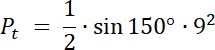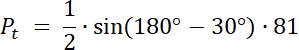 Pt–pole trójkąta, Pw–pole wycinka, Pt–pole trójkąta, r–promień koła, α–kąt wycinka koła, d–długość łuku okręgu wyznaczony przez ten wycinek, r–promień koła, α–kąt wycinka koła, Po–pole odcinka koła (oznaczone kolorem niebieskim), Pw–pole wycinka,