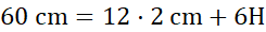 Pamiętaj, podstawy graniastosłupa są identyczne, a wszystkie krawędzie boczne są takiej samej długości. Aby obliczyć długość odcinka H, musisz od 60 cm odjąć długość wszystkich, czyli dwunastu, krawędzi podstaw, a wynik podzielić przez 6, bo tyle krawędzi bocznych ma graniastosłup sześciokątny.