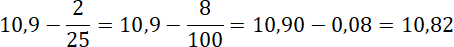 Rozszerz ułamek zwykły do mianownika równego 100 i zapisz go w postaci dziesiętnej (po przecinku znajduje się zero i liczba z licznika). Odjemna jest większa od odjemnika, więc wynik będzie dodatni, dopisz potrzebne zero na końcu części ułamkowej odjemnej.