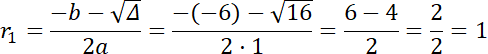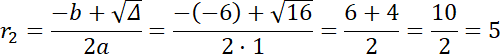 ∆ = b2 – 4ac = (–6)2 – 4 · 1 · 5 = 16