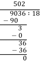 9036 : 502 = 18.