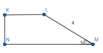 Narysuj trapez, w którym dłuższe ramię ma 4 cm, a kąt ma miarę 30°.
