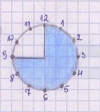 Podziel tarczę na równe części i zamaluj odpowiednią ich ilość. Możesz wykorzystać też informację o minutach i położeniu wskazówki minutowej.