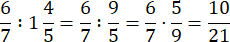 Aby podzielić ułamek przez ułamek, mnożymy pierwszy ułamek przez odwrotność drugiego: