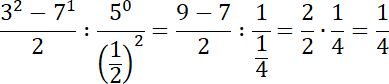 Pamiętaj o kolejności wykonywania działań: pierwszeństwo ma potęgowanie, a następnie dzielenie. Zwróć uwagę, dowolna liczba podniesiona do potęgi zerowej jest równa 1, a liczba podniesiona do potęgi 1 się nie zmienia. Wykonaj odejmowanie w liczniku przed dzieleniem, ponieważ licznik działa jak nawias. Na koniec obróć drugi ułamek i wykonaj mnożenie.