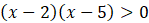 Po narysowaniu pomocniczego wykresy funkcji reprezentującej lewą stronę nierówności otrzymamy parabolę, której ramiona skierowane są w górę i która przecina oś OX w punktach o rzędnych 2, 5. Rozwiązaniem są wszystkie argumenty, dla których wykres znajduje się nad osią OX.