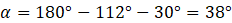 Przy rozwiązaniu zadania skorzystaj z następującego twierdzenia: kąty wpisany i dopisany, oparte na tym samym łuku są równe. W wypadku tego przykładu, kąt wpisany jest jednym z kątów trójkąta, którego pozostałe kąty mają miary równe 112